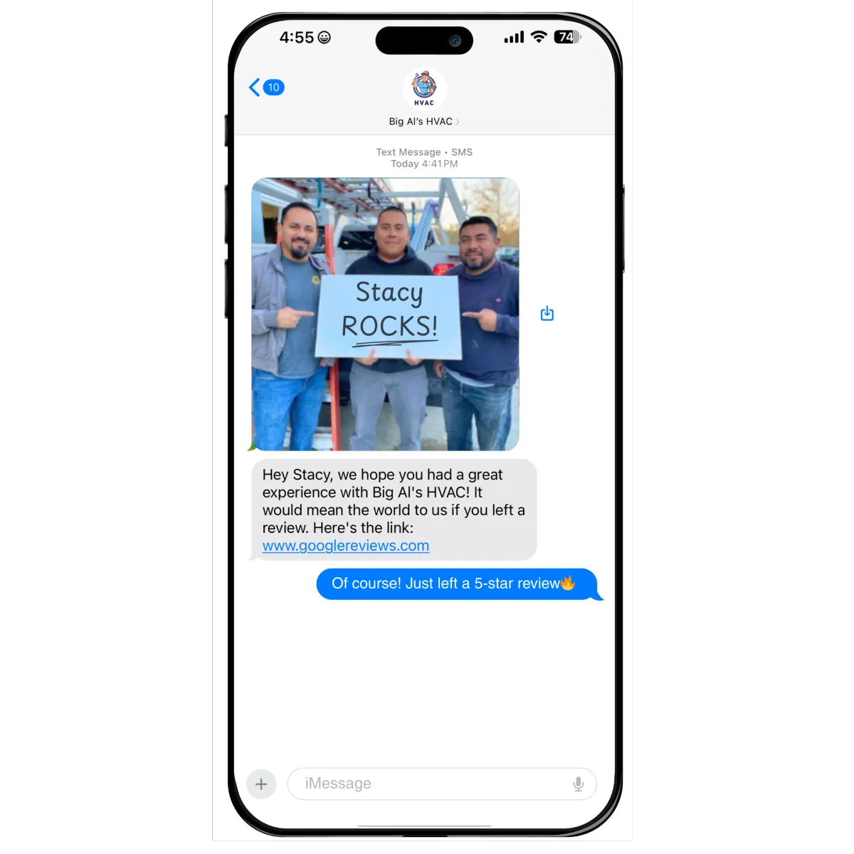 Gone are the days of boring canned review requests. Our system makes your review request stand out with personalized images that include your customer's name. This approach get your customers attention, and gets you the most reviews.